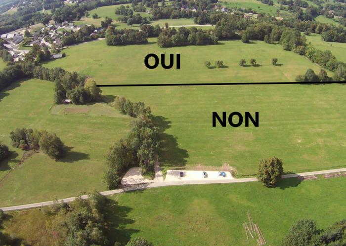 la parcelle haute (au dessus de la manche à air) a été labourée et ne doit plus être utilisée pour poser ! Reste en revanche la parcelle du bas (le long champ orienté nord-sud sous la manche à air) pour un atterrissage encore confortable. (cf photo)